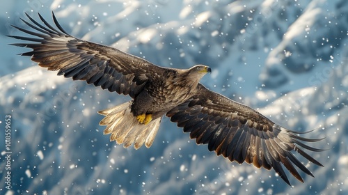 Obraz premium Majestic Eagle Soaring Above Mountain Range