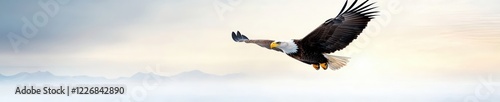 © Sangsung, Obraz premium Majestic Eagle Soaring Above Tranquil Landscape