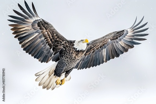 © Michael, Fototapeta premium Majestic Eagle Soaring: Black and White Clipart Portrait in Flight