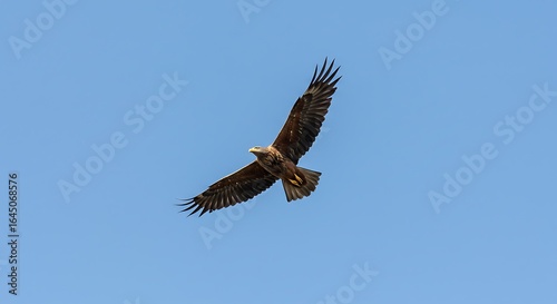 Obraz premium Majestic Eagle Soaring Gracefully Against a Clear Blue Sky