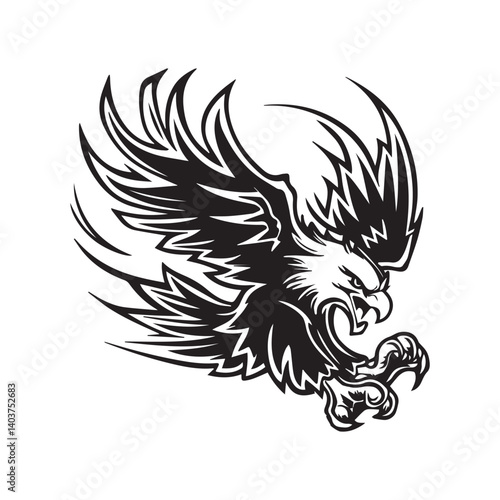 © MdImran, Obraz premium Majestic eagle soaring gracefully against a white backdrop with detailed wing and claw illustrations in silhouette Design