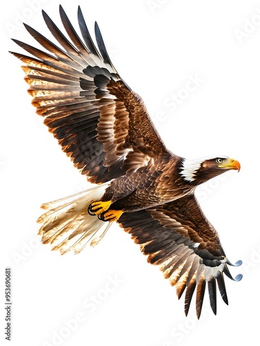 © GreenFrame Studio, Obraz premium Majestic Eagle Soaring Gracefully Through the Pristine Sky with Outstretched Wings and Keen Eyes