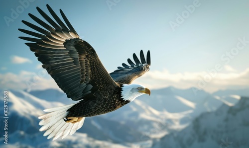 Fototapeta premium Majestic eagle soaring in the sky, 4K hyperrealistic photo