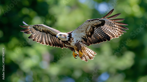 Obraz premium Majestic Eagle Soaring Over American Flag