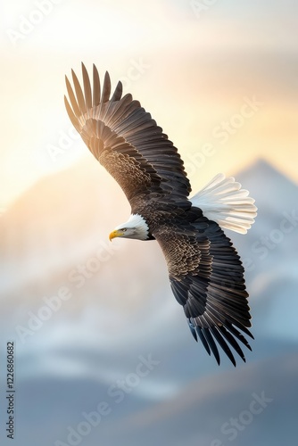 © Sangsung, Fototapeta premium Majestic Eagle Soaring Over Mountain Landscape