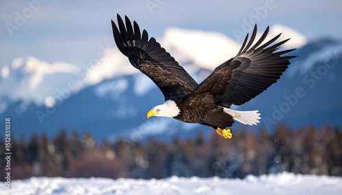 © Alam, Fototapeta premium Majestic eagle soaring over snowy mountains
