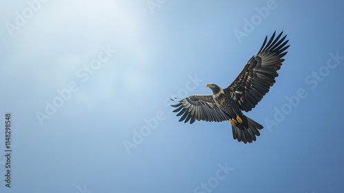 © THUA, Fototapeta premium Majestic eagle soaring through clear blue sky, showcasing its wingspan