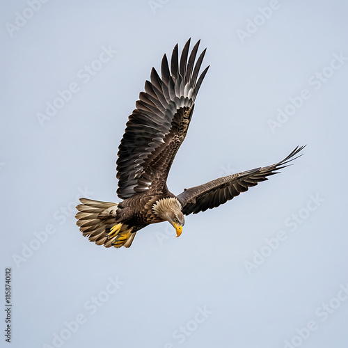 © MD SHAHID MIYA, Fototapeta premium Majestic eagle soaring through clear blue sky with wings spread wide