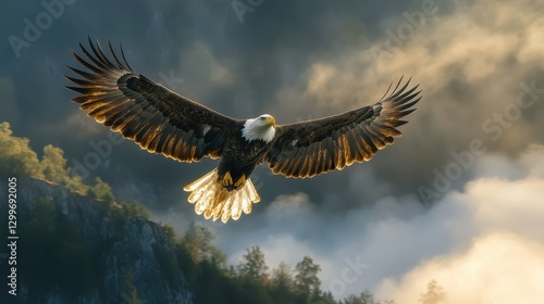 © Kitsada, Fototapeta premium Majestic eagle soaring through dramatic mountain landscape nature photography aerial view wildlife concept