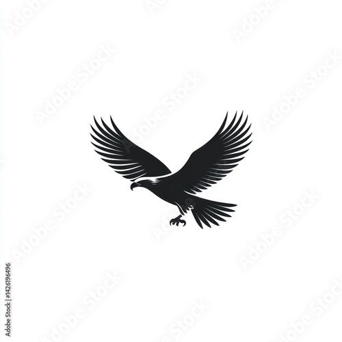 Fototapeta premium Majestic eagle soaring, wings spread wide, against white background; perfect...