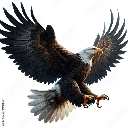 © Galeno, Obraz premium majestic eagle soaring wings spread wide white background