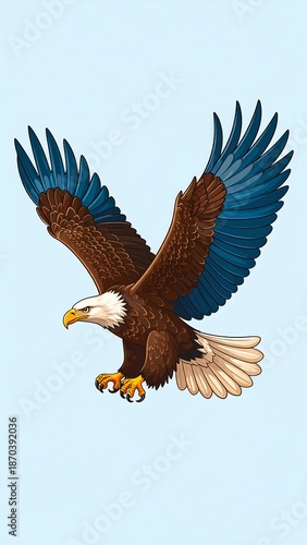 © Hatar, Obraz premium Majestic Eagle Soaring with Open Wings Against a Light Blue Sky.
