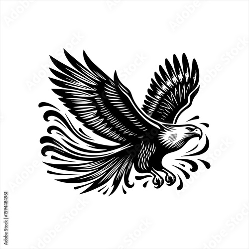 Fototapeta premium Majestic Eagle Soaring with Stylized Wings and Tail Feathers.