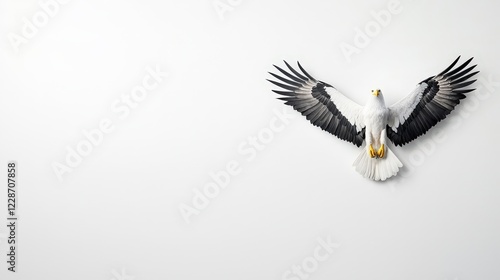 © Sangsung, Obraz premium Majestic Eagle Spreading Its Wings Against White Background