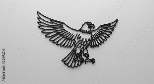 Fototapeta premium Majestic Eagle Wall Art: A 3D Line Art Sculpture of a Bald Eagle in Flight