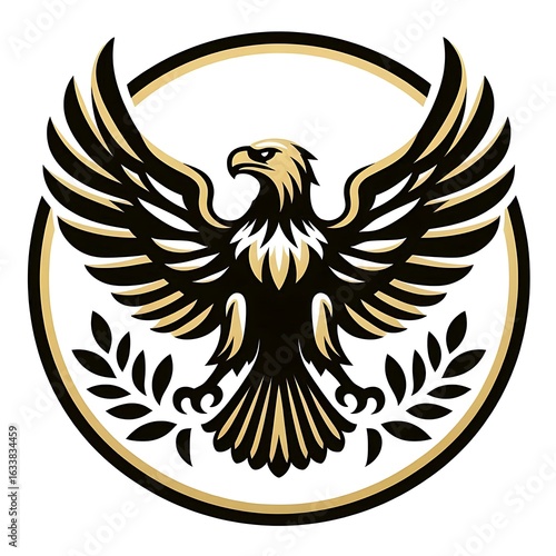 © RF1999, Obraz premium Majestic eagle with open wings and laurel wreath isolated on white background