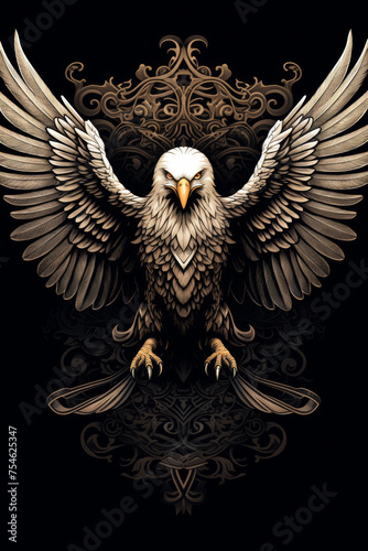 Fototapeta premium Majestic Eagle with Outstretched Wings on Ornate Emblem Background