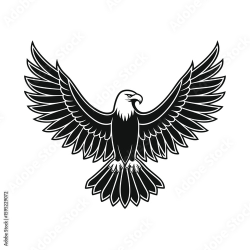 Fototapeta premium Majestic eagle with spread wings black outline bird