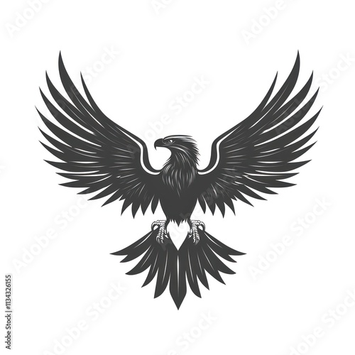 © lestari, Obraz premium Majestic eagle with wings spread wide, isolated on white background.