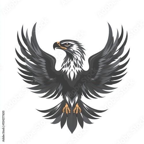 © lestari, Obraz premium Majestic eagle with wings spread wide, viewed from below, against a white background.