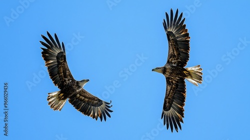 © thesweetsheep, Obraz premium Majestic Eagles Soaring High in the Clear Blue Sky
