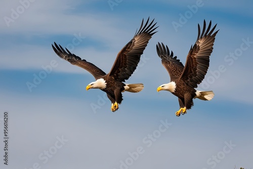 © Michael, Obraz premium Majestic Eagles Soaring in a Pristine Sky Background