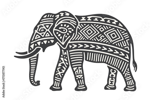 Fototapeta premium Majestic elephant adorned with intricate tribal patterns, symbolizing...