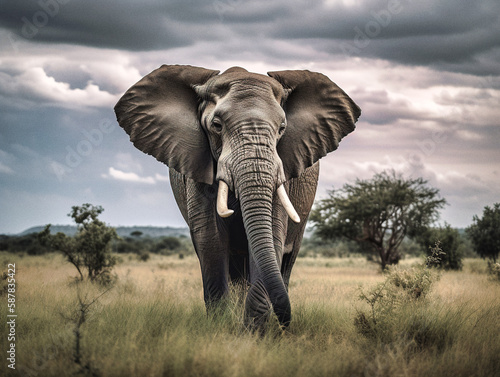 © Uolir, Naklejka premium Majestic Elephant in the Savanna - generative ai