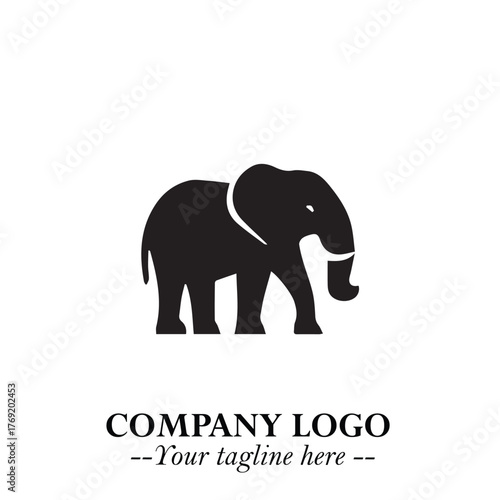 Obraz premium Majestic Elephant Logo Symbol in Black on White Background with Elegant Minimalist Modern Design