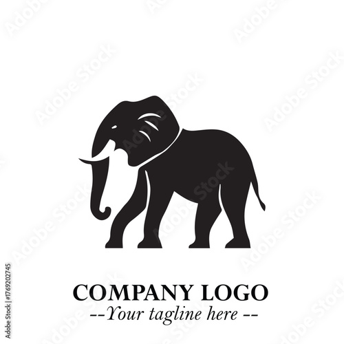 Obraz premium Majestic Elephant Logo Symbol in Black on White Background with Elegant Minimalist Modern Design