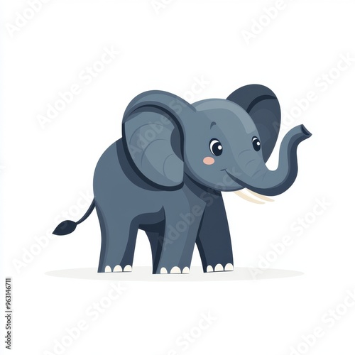 Fototapeta premium Majestic Elephant Minimalist Flat Illustration with Raised Trunk on White...