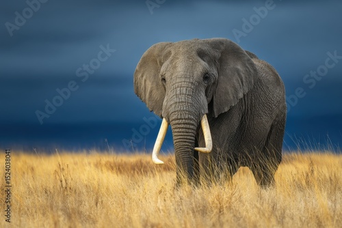Naklejka premium Majestic Elephant Roaming Freely In African Savannah Under Dark Sky