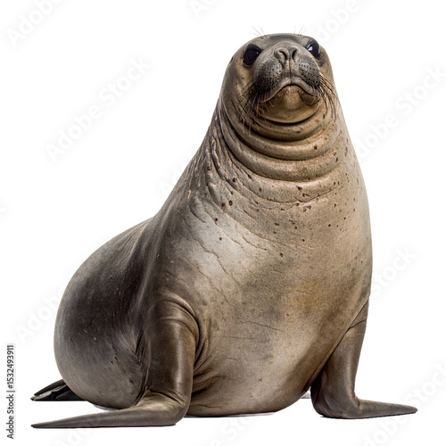 Naklejka premium Majestic elephant seal gazes upwards, isolated for design versatility on...