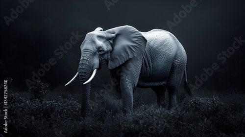 Fototapeta premium Majestic Elephant Walking Through Dense Grass in Low Light Environment