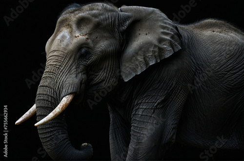 Naklejka premium Majestic Elephant With Tusks in Front of Black Background