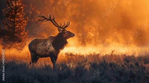 Naklejka premium Majestic Elk in Autumn Forest Scene at Sunrise