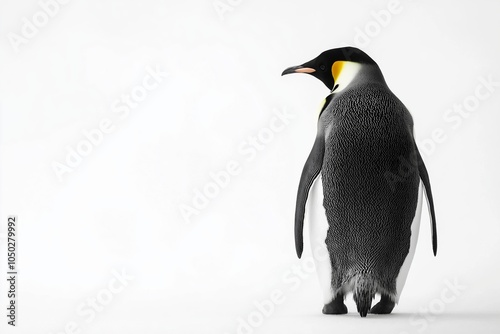 Naklejka premium Majestic emperor penguin standing alone on snowy white background. Penguin...