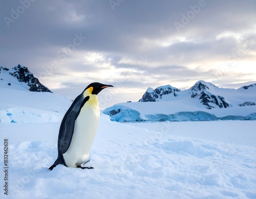 © Fandi, Fototapeta premium Majestic Emperor Penguin Standing Proudly on Antarctic Ice Sheet.