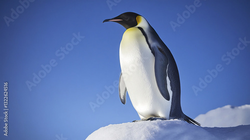 © Thanthara, Fototapeta premium majestic emperor penguin stands on snowy ridge under clear blue sky