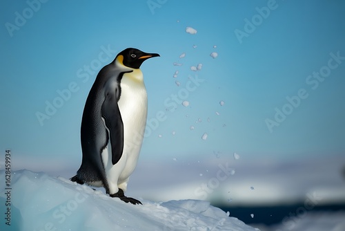 © Awais, Naklejka premium Majestic Emperor Penguin stands proudly on icy terrain against a vibrant, clear blue sky