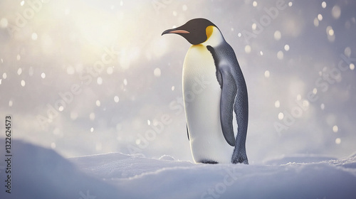 © Thanthara, Fototapeta premium majestic emperor penguin stands tall on icy terrain
