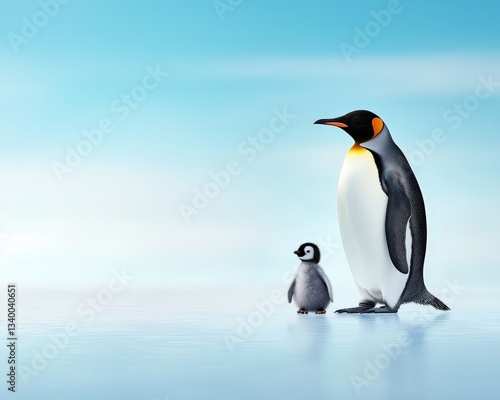 Fototapeta premium Majestic Emperor Penguin with Adorable Chick on Icy Background