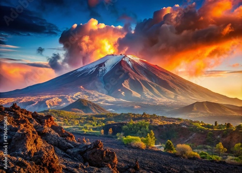 Fototapeta premium Majestic Etna Volcano: Sicily's Dramatic Landscape, High-Resolution Stock Photo