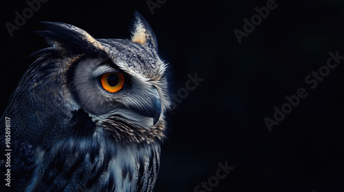 © Александр Марченко, Obraz premium Majestic eurasian eagle owl posing on black background
