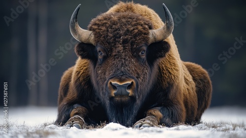 © Balerinastock, Fototapeta premium Majestic European Bison in Winter Wonderland