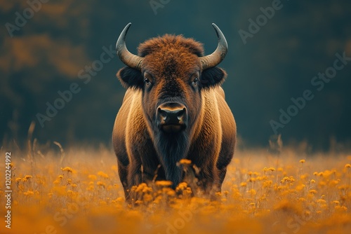 © NikahGeh, Naklejka premium Majestic European Bison Stands in Autumnal Field