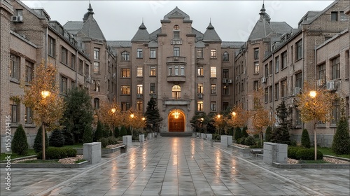 Fototapeta premium Majestic Facade: An impressive building, designed with symmetry, offers a...