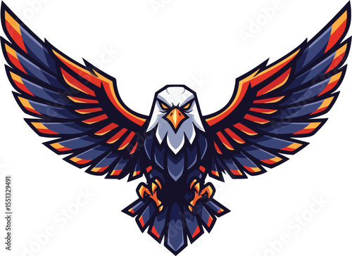 © Rosie Lee, Naklejka premium Majestic Falcon Spreading Its Wings In Mid Flight Against A Dark Background