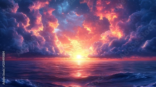 Fototapeta premium Majestic Fantasy Sky with Dramatic Clouds over Ocean. Generative AI