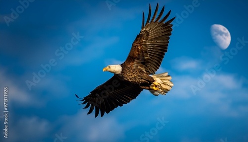© Afaq, Fototapeta premium Majestic Flight: Bald Eagles Soaring in the Sky by Noufaldi